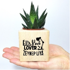 Kişiye Özel Book Lover Ahşap Küp Saksı ve Haworthia Sukulent - MK10 |