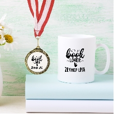 Kişiye Özel Book Lover Beyaz Kupa Bardak ve Madalya - MK08 |