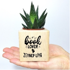 Kişiye Özel Kitapsever Temalı Küp Saksı ve Haworthia Sukulent - MK07 |