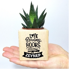 Kişiye Özel Love Reading Temalı Küp Saksı ve Haworthia Sukulent - MK06 |