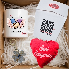 Kişiye Özel Lüks Hediye Seti - Sevgiliye Hediye Kutusu (Kupa Bardak, 10 Adet Şans Kurabiyesi, 1 Nazar Boncuğu anhtarlık, 1 Kalpli Mini Yastık) Hediye Kutusu, Sevgiliye Hediye Kutusu, Romantik Hediye, Doğum Günü, 14 Şubat Hediyesi |