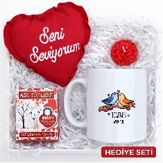 Ürün Detayları: Ürününüz kişiye özel değildir, görseldeki gibi hazırlanmaktadır. Kupa / Bardak üzerindeki baskıda herhangi bir silinme, fotoğrafta solma vs. olmayacaktır. Kupa / Bardak üzerindeki baskıya sert ve keskin cisimlerle dokunulmamalı, baskı yakılmamalı, asit ve benzeri sıvı temasında bulunulmamalıdır. İçeceklerinizi cam bardaklara göre daha uzun süre sıcaklığını korumaktadır. Özel olarak üretilen tasarım kupa bardaklar içeceklerinizi yudumlamak daha keyifli olacaktır. Sevgi bazen bir kutuya sığar… İçini açtığında gülümseten, dokunduğunda “iyi ki” dedirten bu özel hediye kutusu; sevdiğine küçük ama çok anlamlı bir mutluluk bırakmak için hazırlandı. ☕ Özel tasarım sevimli kupa bardak 💕 Aşk dolu mini seni seviyorum yazılı kalp yastık 🕯️ Romantik gül desenli kırmızı mini mum 💌 Aşk sözleriyle dolu 365 Aşk sözleri kartları Hepsi sevgiyle bir araya geldi 💕 Sevgiliye Hediye, Doğum günü Hediyesi, Sürpriz Hediye, yıldönümü ya da “iyi ki varsın” ve “Seni seviyorum, hep aklımdasın” demek istediğin herhangi bir gün için… Sevdiklerinizi Mutlu Edecek Hediye Kutuları tüm özel günlerde mutluluğunuza eşlik etmeye uygundur.Hediye Kutusundaki ürünler kullanışlı, eğlenceli ve duygusal detayları bir arada sunar. Yıl boyunca hediye edilebilir romantik tasarımlı sevimli kupa bardaklarla sevginizi gösterin.