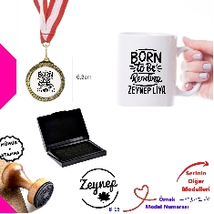 Kişiye Özel Born To Be Reading Seti - Ahşap Mühür, Madalya ve Kupa Bardak B Serisi |