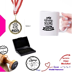 Kişiye Özel İsimli Kitapsever Seti - Ahşap Mühür, Madalya ve Kupa Bardak F Serisi |