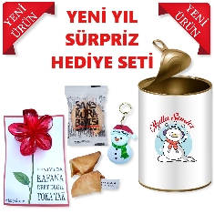 Hediye Kutusunda Yılbaşı Hediyesi, Yılbaşı Hediyesi, Şans Kurabiyesi, Konsept Hediye Kutusu (1 adet Anahtarlık ve 1 adet çiçek toka, 1 Adet Şans Kurabiyesi) Konsept konserve kutusu görselde Mutlu Seneler tasarımı ile gönderilmektedrir. Hediye Kutusu içerisinde: 1 adet anahtarlık, 1 adet toka ve motivasyon mesajları içeren 1 adet Şans Kurabiyesi bulunmaktadır. Konsept Hediye Kutusu Hakkında Bilinmesi Gerekenler Ürün, teneke gıda konservesi şeklinde tasarlanmış ve içerisinde şans kurabiyesi bulunan sürpriz hediye kutusudur. Konserve tenekesinin kapağı kapalı şekilde gönderilmektedir. Dikkatli bir şekilde açma halkasından açmalısınız. Konserve kutusu konsepti hem içerisindeki hediyenin sürpriz olması, hem korunaklı gönderimi hem de ürün açıldıktan sonra kutunun kalemlik, saksı, masa üstü düzenleyici vb şekilde kullanılması açısından oldukça dikkat çekmekte ve merak uyandırmaktadır. Konserve tenekelerinin içerisini lezzetli mi lezzetli yeni üretim şans kurabiyesi bulunmaktadır. İlginç konsept metal hediye kutusu ile sevdiklerinizi mutlu edebilirsiniz.