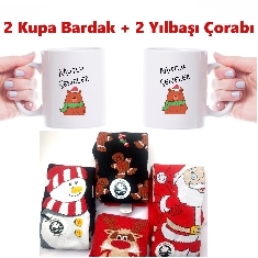 Yılbaşı Çorabı Seti, Sevimli Yılbaşı Hediyesi, Yılbaşı Hediyeleri, Yeni Yıl Hediyesi 2 adet Şans Kurabiyesi ve 2 Adet Kupa ve Yılbaşı Desenli 36-40 numara Çorap Hediye Seti |