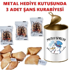Hediye Kutusunda Yılbaşı Hediyesi, Yılbaşı Hediyesi, Şans Kurabiyesi, Konsept Hediye Kutusu (3 Adet Şans Kurabiyesi) Konsept konserve kutusu görselde Mutlu Seneler tasarımı ile gönderilmektedrir. Hediye Kutusu içerisinde: Motivasyon mesajları içeren 3 adet Şans Kurabiyesi bulunmaktadır. Konsept Hediye Kutusu Hakkında Bilinmesi Gerekenler Ürün, teneke gıda konservesi şeklinde tasarlanmış ve içerisinde şans kurabiyesi bulunan sürpriz hediye kutusudur. Konserve tenekesinin kapağı kapalı şekilde gönderilmektedir. Dikkatli bir şekilde açma halkasından açmalısınız. Konserve kutusu konsepti hem içerisindeki hediyenin sürpriz olması, hem korunaklı gönderimi hem de ürün açıldıktan sonra kutunun kalemlik, saksı, masa üstü düzenleyici vb şekilde kullanılması açısından oldukça dikkat çekmekte ve merak uyandırmaktadır. Konserve tenekelerinin içerisini lezzetli mi lezzetli yeni üretim şans kurabiyesi bulunmaktadır. İlginç konsept metal hediye kutusu ile sevdiklerinizi mutlu edebilirsiniz.
