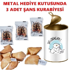 Hediye Kutusunda Yılbaşı Hediyesi, Yılbaşı Hediyesi, Şans Kurabiyesi, Konsept Hediye Kutusu (3 Adet Şans Kurabiyesi) Konsept konserve kutusu görselde Mutlu Seneler tasarımı ile gönderilmektedrir. Hediye Kutusu içerisinde: Motivasyon mesajları içeren 3 adet Şans Kurabiyesi bulunmaktadır. Konsept Hediye Kutusu Hakkında Bilinmesi Gerekenler Ürün, teneke gıda konservesi şeklinde tasarlanmış ve içerisinde şans kurabiyesi bulunan sürpriz hediye kutusudur. Konserve tenekesinin kapağı kapalı şekilde gönderilmektedir. Dikkatli bir şekilde açma halkasından açmalısınız. Konserve kutusu konsepti hem içerisindeki hediyenin sürpriz olması, hem korunaklı gönderimi hem de ürün açıldıktan sonra kutunun kalemlik, saksı, masa üstü düzenleyici vb şekilde kullanılması açısından oldukça dikkat çekmekte ve merak uyandırmaktadır. Konserve tenekelerinin içerisini lezzetli mi lezzetli yeni üretim şans kurabiyesi bulunmaktadır. İlginç konsept metal hediye kutusu ile sevdiklerinizi mutlu edebilirsiniz.